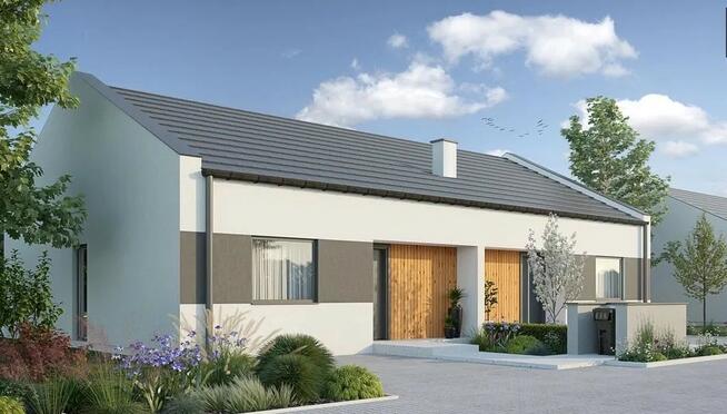 8REZERWACJA Dom parterowy z użytkowym poddaszem w zabudowie bliźniaczej w stanie deweloperskim o powierzchni 87mkw ...